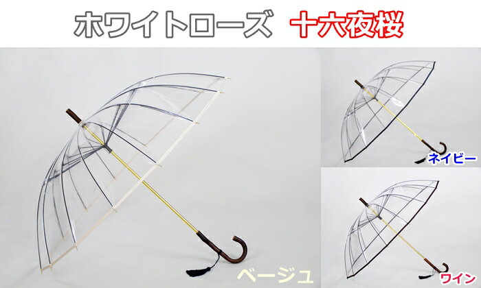 ホワイトローズ社のビニール傘シリーズはご購入者様から、 『視界良好』『しっかりした作り』『男性も違和感なく使用出来ます』 『着物にもピッタリ』『コンビニ傘(ビニ傘)とはやっぱり違います』 『プレゼントしたら大喜びして頂けました』『強風でも耐えられました』 など沢山の声が届いています。