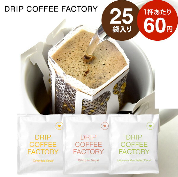メール便送料無料 自家焙煎 25杯 ( 25袋 ) 違いを楽しむ カフェインレス デカフェ 3種 飲み比べ ドリップバッグ コーヒー アソート セット ( コロンビア デカフェ9袋、インドネシア マンデリン デカフェ8袋、エチオピア デカフェ8袋 ) | ドリップコーヒー
