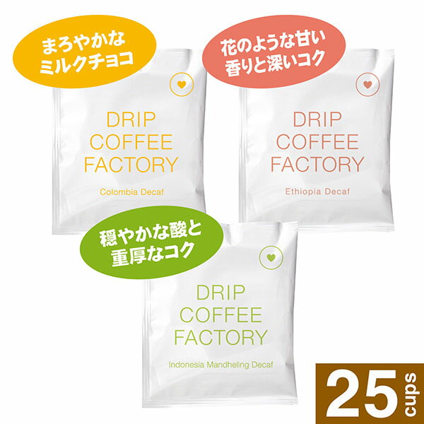 メール便送料無料 自家焙煎 25杯 ( 25袋 ) 違いを楽しむ カフェインレス デカフェ 3種 飲み比べ ドリップバッグ コーヒー アソート セット ( コロンビア デカフェ9袋、インドネシア マンデリン デカフェ8袋、エチオピア デカフェ8袋 ) | ドリップコーヒー